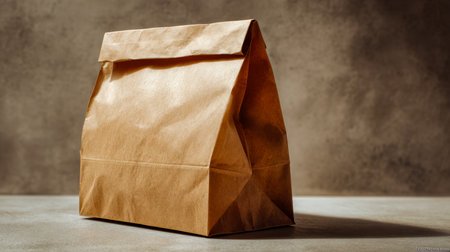 A solitary, unused paper bag rests upright against a richly textured backdrop, evoking simplicity and potential for creative presentation or minimalist design.