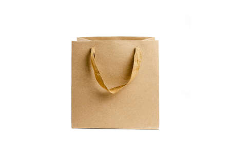 Recycled craft paper bag on white. Shopping paper bag isolated on white background. Paper bag mock up for design.