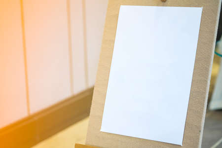 Blank canvas,poster or board against white wall on pvc floor in modern interior, empty room space for text background