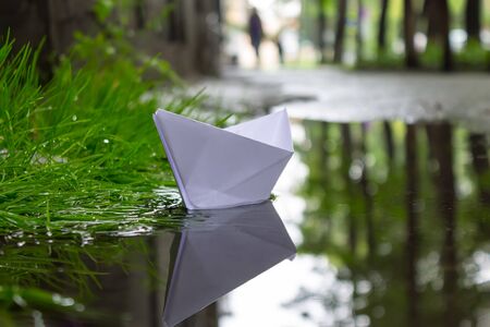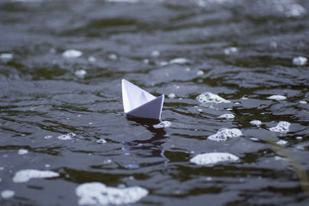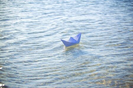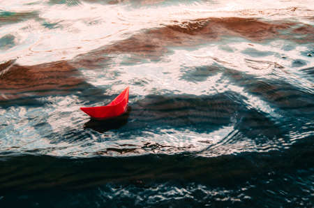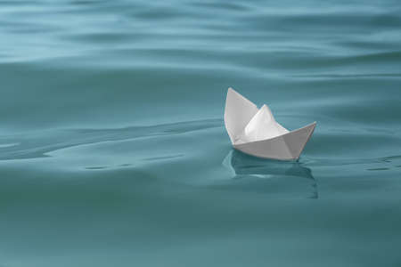 Paper boat floating in the water. Conceptual image of travel and adventure
