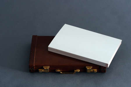 Notebook coming out of an open leather briefcase Vintage Retro Filter.