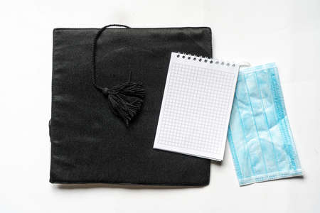 Subjects for the graduate 2021. Confederate and mask. Graduation concept. Digit inscription 2021