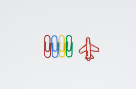 Business concept of difference employee for group of colorful paperclip and another difference red plane paperclip