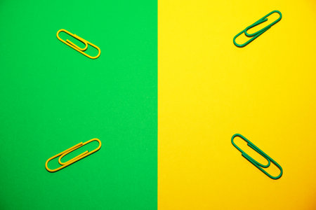 yellow paper clips on color background