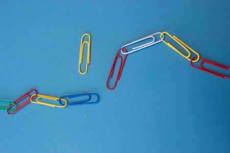 Paper clips on a blue background
