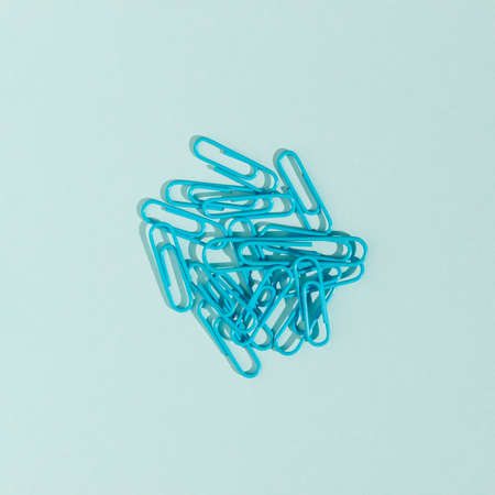 Paperclips group on a blue table.