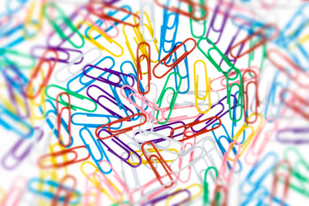 Close up of many colourful paper clips