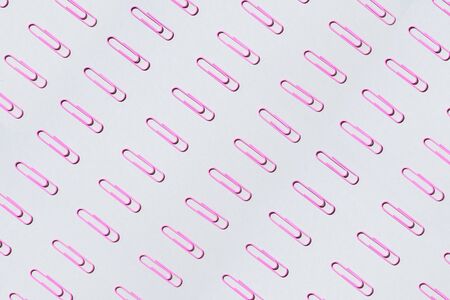 Decorative paper clips pattern on pastel pink background minimal creative concept.