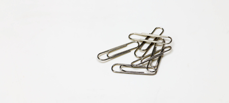 Paper clips isolated on white background. Copy space for your text.