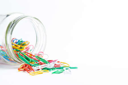 multicolored paper clips on white background