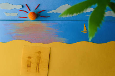 Memories of me and my father Figurative father and daughter walking towards sunset on a beach