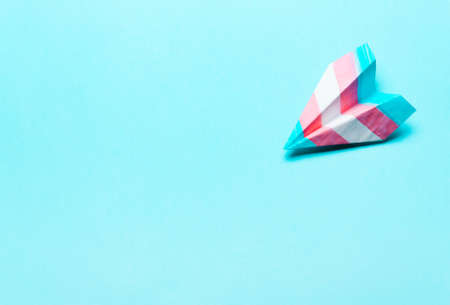 Paper airplane in transgender flag on a blue background