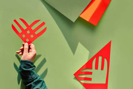 Craft Heart from paper or eva. Spring creative. DIY concept. Easy handmade paper crafts