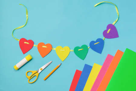 DIY instruction. Step by step guide. The process of making a garland of hearts for Valentine's Day.