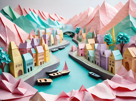 paper craft of city and river