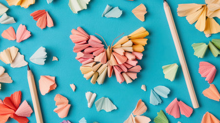 Creative butterfly made with colored pencil shavings.