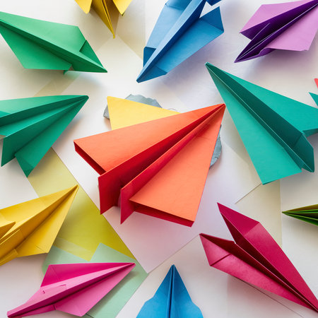 flat lay colorful paper planes