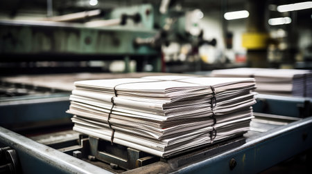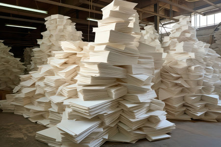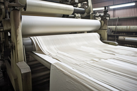 close-up of paper being pressed into sheets in pulp and paper plant, created with generative ai