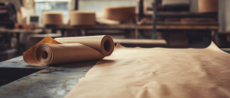 Kraft paper rolls on a crafting table showcasing texture and versatility in designs