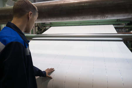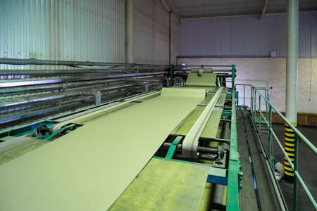 Factory for the production of paper and cardboard. Production equipment for paper production. Big machine. The machine makes paper