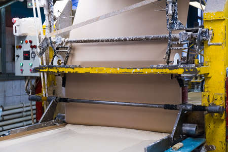 Manufacture of corrugated paper and containers of paper and paperboard. Large rolls of paper. The gap of paper.