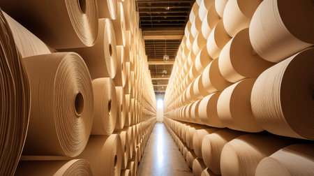 Giant Paper Rolls Await Processing in High-Tech Factory Manufacturing and Industrial Industry
