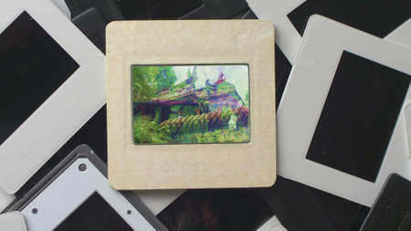 35 mm mounted film slides into the cardboard different colored isolated on white background, cliping path embedded