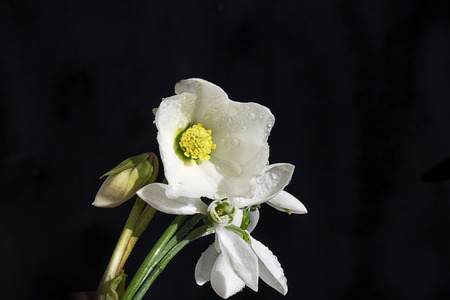 White lily flower on a black background close-up macro photography