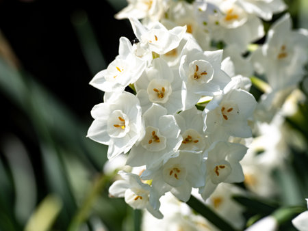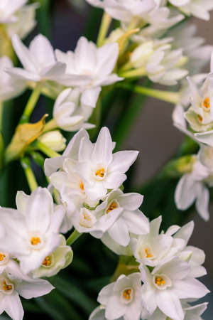 Narcissus tazetta, paperwhite, bunch-flowered Daffodil, Chinese sacred lily, cream joss flower, polyanthus, perennial ornamental plant.