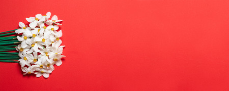Springt concept. Flowers bouquet on the red background with copy space.