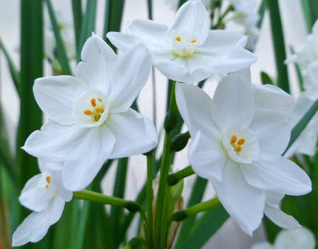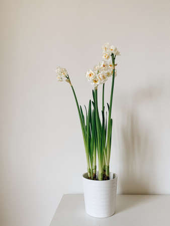 Beautiful white narcissus 'Bridal Crown' blooming indoors
