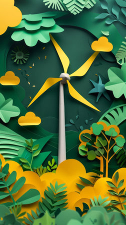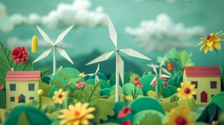 Paper cut , clean power energy, windmills in nature