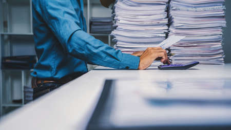 Businessman working and prepare paperwork report data to analysis information in file binder at office.