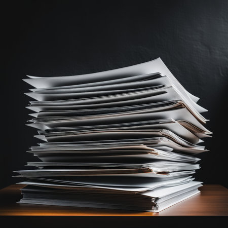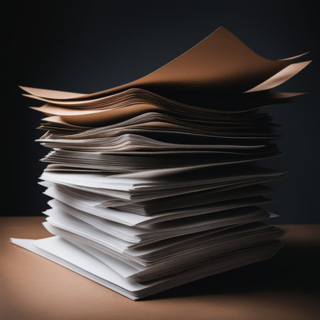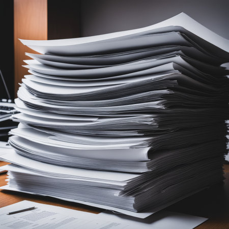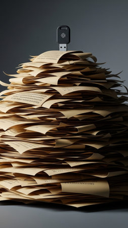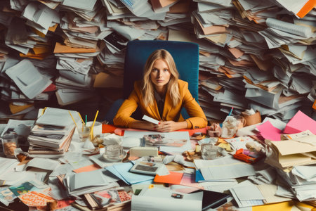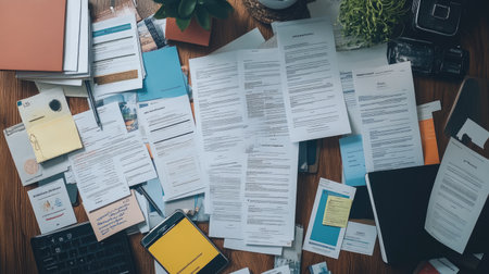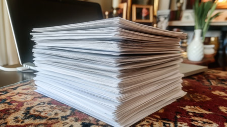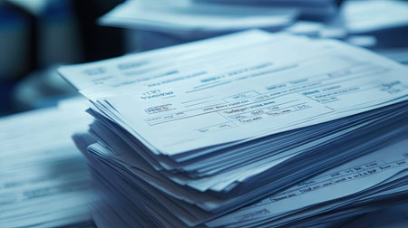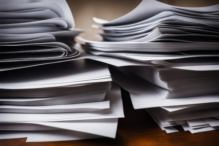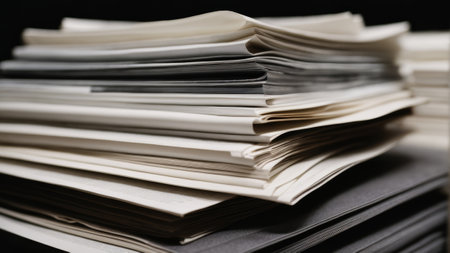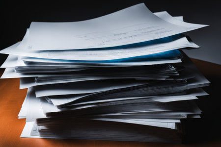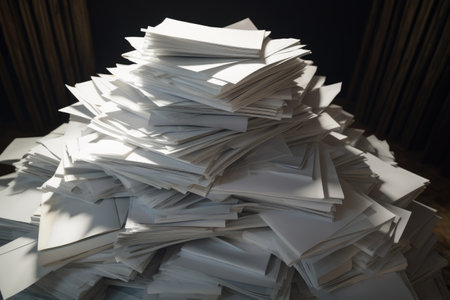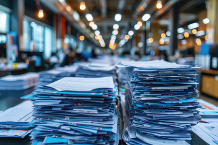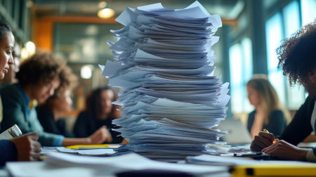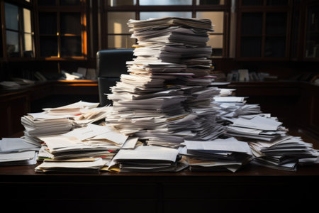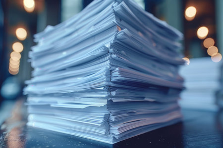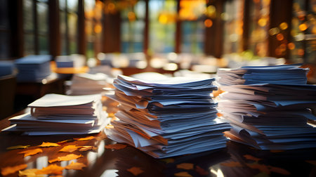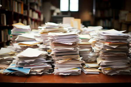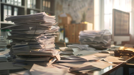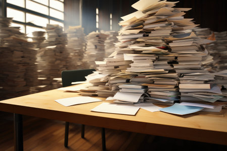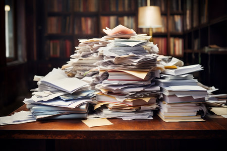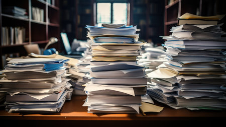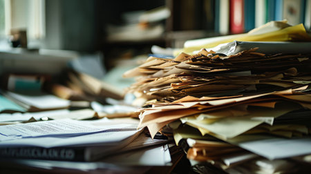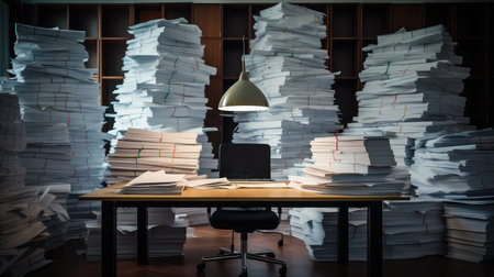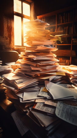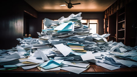 Pile of papers in the office. Generative AI technology