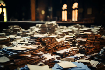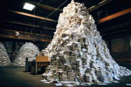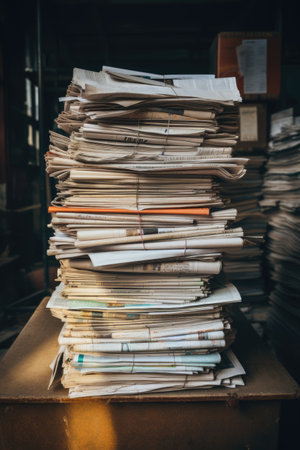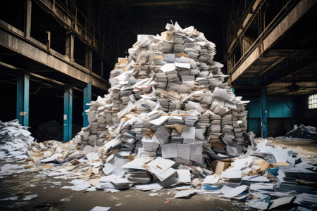 Pile of papers in a warehouse, Ai generated