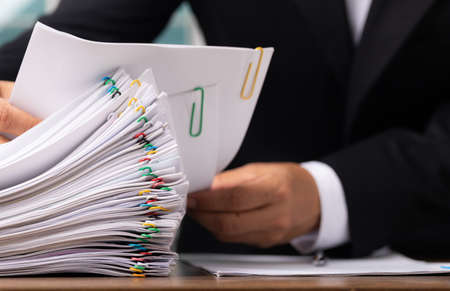 Pile of unfinished documents on office desk, Stack of business papers on office desk
