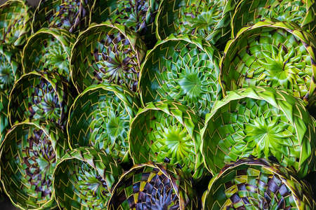 Sale of plates from leaves of palm trees. Cuban souvenirs.