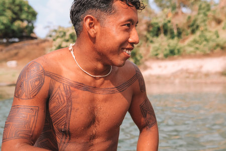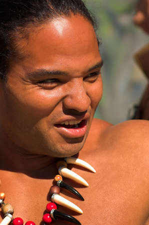 Muscular young Polynesian man wearing a claw necklace