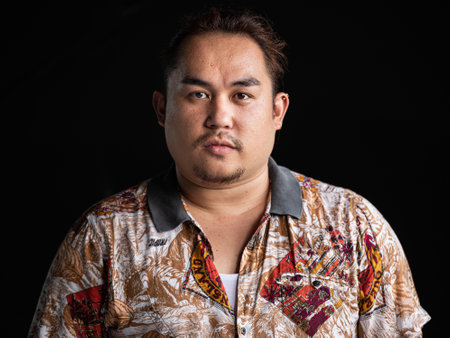 Portrait of a fat Asian man in a shirt on a black background