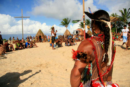 santa cruz cabralia, bahia / brazil - april 21, 2009: Pataxo Indians are seen during disputes at indigenous games in the Coroa Vermelha village in the city of Santa Cruz Cabralia.
