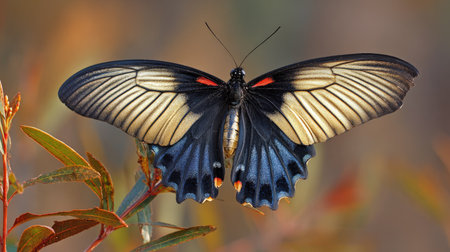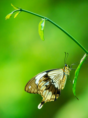 Papilio memnon, the Great Mormon butterfly on a leaf