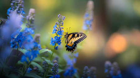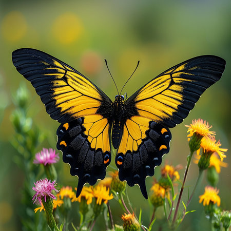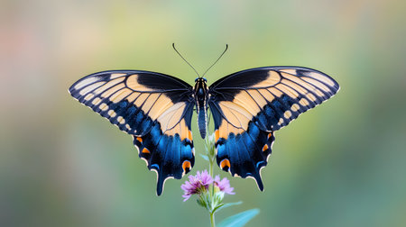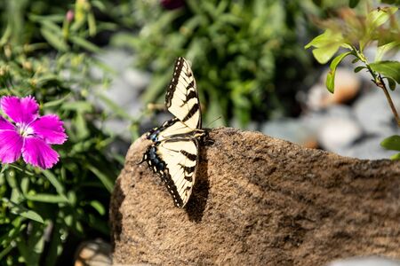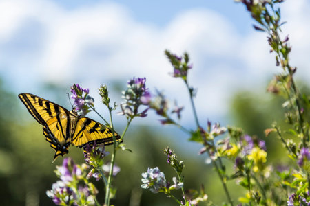 eastern tiger swallowtail butterfly pollinates wildflowers