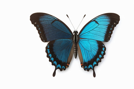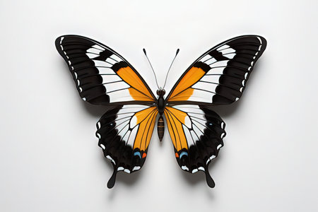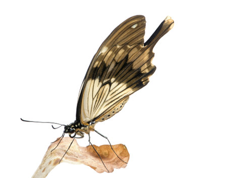 Lower angle of view shot of a butterfly on white background