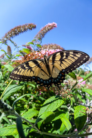 Eastern Tiger Swallowtail butterfly Papilio glaucus feeding on wildflowers in Maryland during the Summer