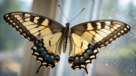 Butterfly Papilio machaon on the window.