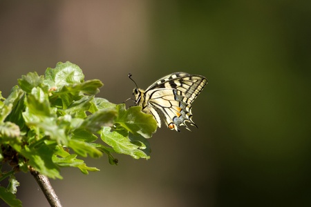 Butterfly Papilio machaon (Papilio machaon) on a branch