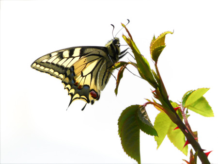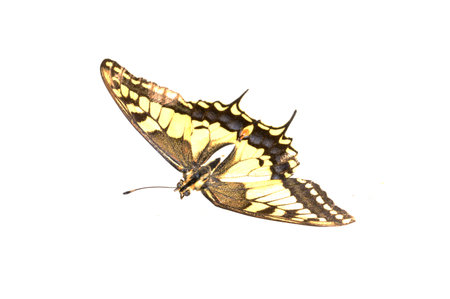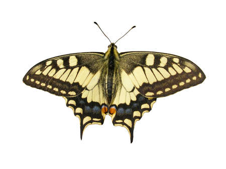 Common yellow swallowtail butterfly isolated on white background