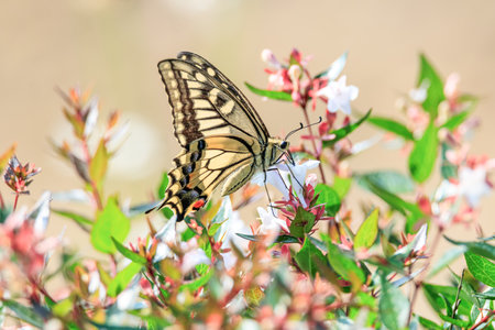 Old World Swallowtail or common yellow swallowtail (Papilio machaon) sitting on summer lilac
