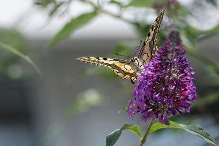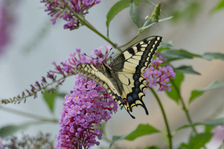 Old World Swallowtail or common yellow swallowtail (Papilio machaon) sitting on summer lilac in Zurich, Switzerland