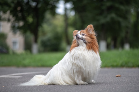 Cute young dog of the Continental Toy spaniel - Papillon